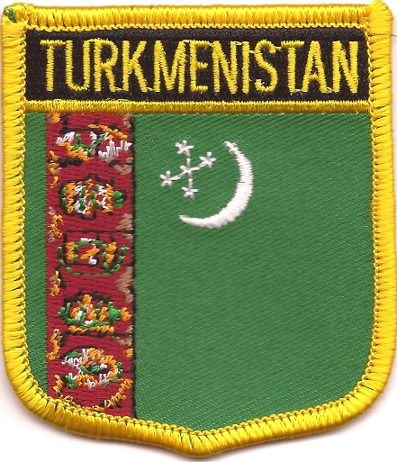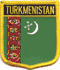 Turkmenistan flag shield patches are fully embroidered and measure 2.25″ x 2.5″. Each patch is trimmed in gold and can be ironed or sewn on.