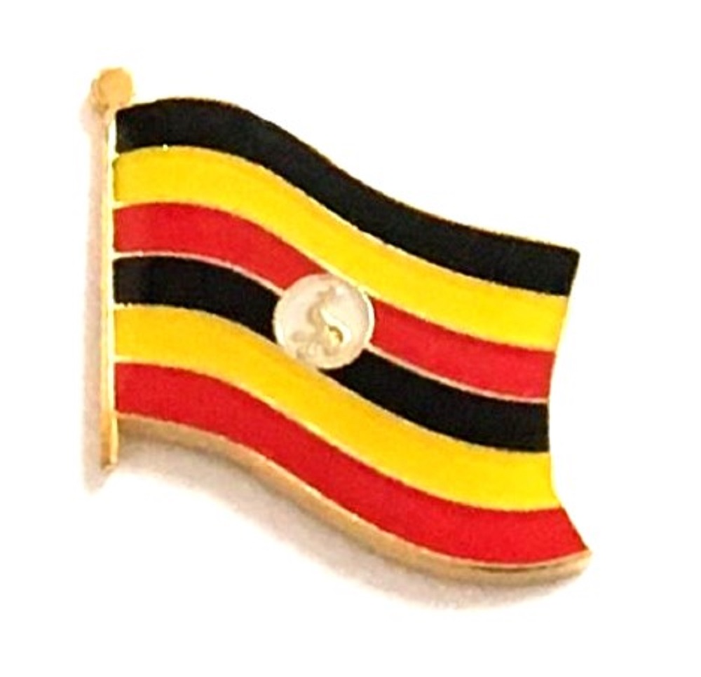 Uganda flag pin measures approximately 1 inch; x 3/4 inch; or 24 mm x 16 mm and has an all metal lacquered design with clutch pin.