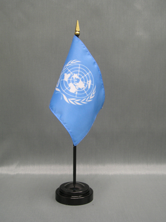 These miniature United Nations 4x6 inch; stick flags are beautifully printed on silk-like material. Each flag is carefully hem-stitched on all 4 sides for longer lasting beauty. They are attached to a 10 inch; black plastic staff with a gold spear making these international flags perfect for desktop or tabletop displays.