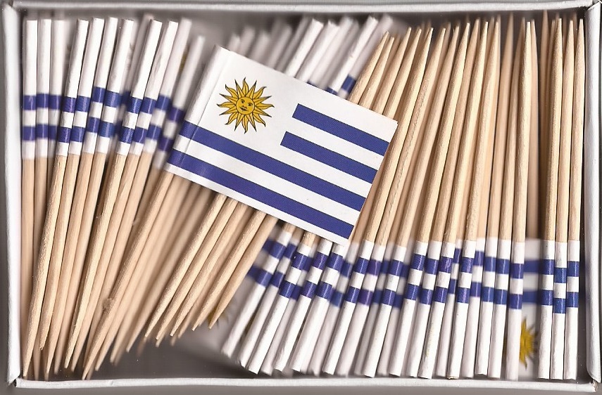 Flag toothpicks are packaged 100 to the box. Each box is sealed with a cellophane wrapper. Flag designs measure 1″x1.5″ and are attached to a standard size wooden 2.5″ toothpick.