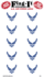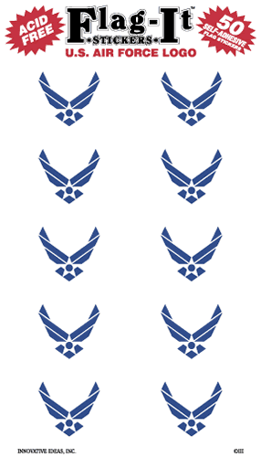US Air Force logo stickers are packed 50 stickers per package. 5 pages with 10 stickers per page. Each sticker measures 1" x 1 1/2". Perfect for school projects or envelope decorations. Stickers adhere to any smooth flat surface.