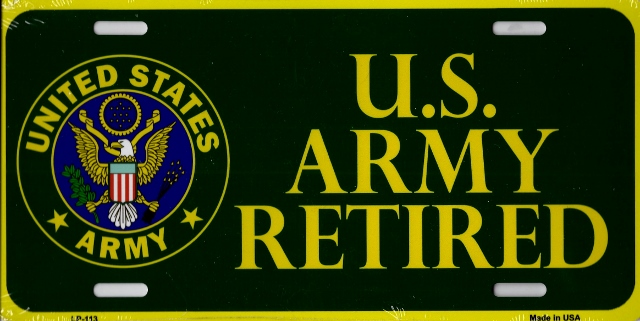 Military themed license plates are made of high quality aluminum and measure 6"x12". Standard auto mounting holes make attaching to your vehicle easy or hang them on a wall like a sign.