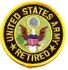 US Army Retired Round Patch features the official United States Army emblem with "Retired" lettering in a bold circular layout.