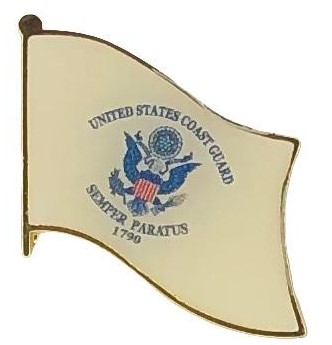 US Coast Guard single flag lapel pins depict one waving flag. Each Coast Guard flag pin measures approximately 5/8" x 5/8" and has an all metal lacquered design with clutch pin.