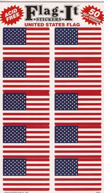 Top quality flag stickers measure 1" x 1 1/2" each. Stickers are packaged 50 stickers per pack. Ready to hang on a peg on a retail display.