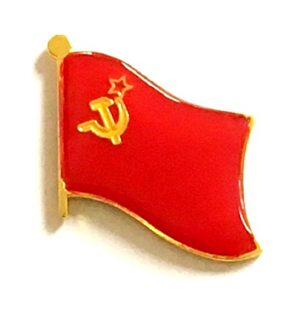 USSR flag pin measures approximately 1 inch; x 3/4 inch; or 24 mm x 16 mm and has an all metal lacquered design with clutch pin.