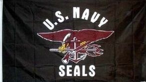 3'x5' polyester US Navy Seal flag has 2 brass grommets for attaching to your flag pole.