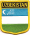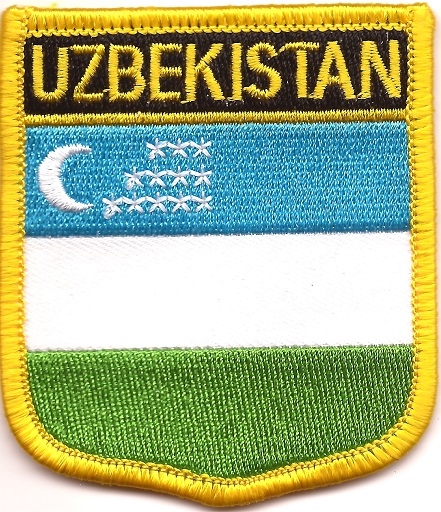 Uzbekistan flag shield patches are fully embroidered and measure 2.25″ x 2.5″. Each patch is trimmed in gold and can be ironed or sewn on.