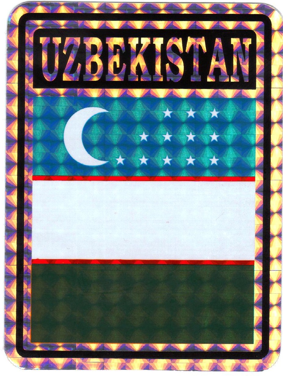 Uzbekistan prismatic reflective decal stickers are made of waterproof vinyl. Decals measure 3"x4" and can be used outdoors in all weather. Great for attaching to your car, truck or boat. Decorate your home or automobile and show your Uzbekistani pride.