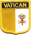 Vatican City flag shield patches are fully embroidered and measure 2.25″ x 2.5″. Each patch is trimmed in gold and can be ironed or sewn on.