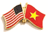 Each Vietnam flag friendship lapel pin depicts the US flag on the left along with the Vietnamese flag on the right. Each pin measures approximately 1" x 3/4" or 28 mm x 18.3 mm and is the same quality as the single flag lapel pins.