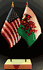 Elevate your workspace with our Wales and American miniature flag desk set! These silk-like rayon flags, measuring 4"x6", are attached to a 10" black plastic staff and finished with a gold spear top. Perfect for office, classroom, or table decor. Each set comes with a 4" long white flag stand for added display options.