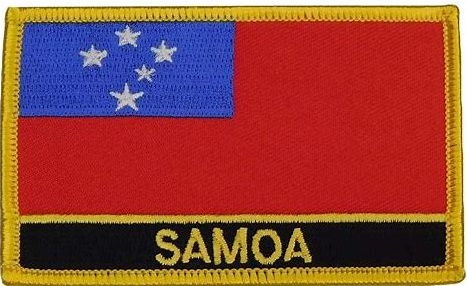 Western Samoa flag patches are fully embroidered with the name of the country on the patch. Each patch measure 3.25″ x 2.125″. These flag patches are the highest quality world flag patches on the market and can be sewn or ironed on.