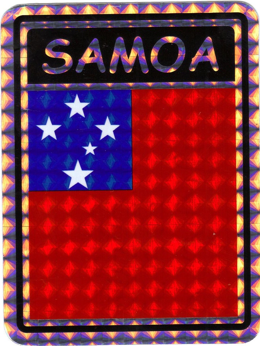Western Samoa prismatic reflective decal stickers are made of waterproof vinyl. Decals measure 3"x4" and can be used outdoors in all weather. Great for attaching to your car, truck or boat. Decorate your home or automobile and show your Western Samoan pride.