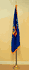 Click photo for larger image. Each State of Wisconsin indoor flag set includes the 3'x5' gold fringed nylon Wisconsin state flag with lined pole heading, leather tabs, cord and tassels, 8' polished oak pole with solid brass joint, heavy metal gold anodized stand, and gold plated 7 1/2" metal spear. (American Flag set sold separately).
