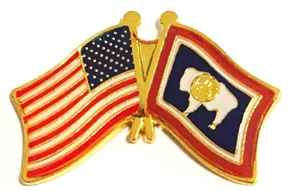 Each Wyoming flag friendship lapel pin depicts the US flag on the left and the Wyoming flag on the right. Each pin measures approximately 1" x 3/4" or 28mm x 18.3mm and is the same quality as the single flag lapel pins.