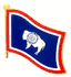 Wyoming single flag lapel pins depict one waving flag. Each Wyoming flag pin measures approximately 1" x 3/4" or 24 mm x 16 mm and has an all metal lacquered design with clutch pin.