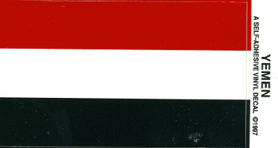 Special closeout sale. Buy 25 or more Yemen vinyl waterproof flag decals and the price is only 40 cents each.