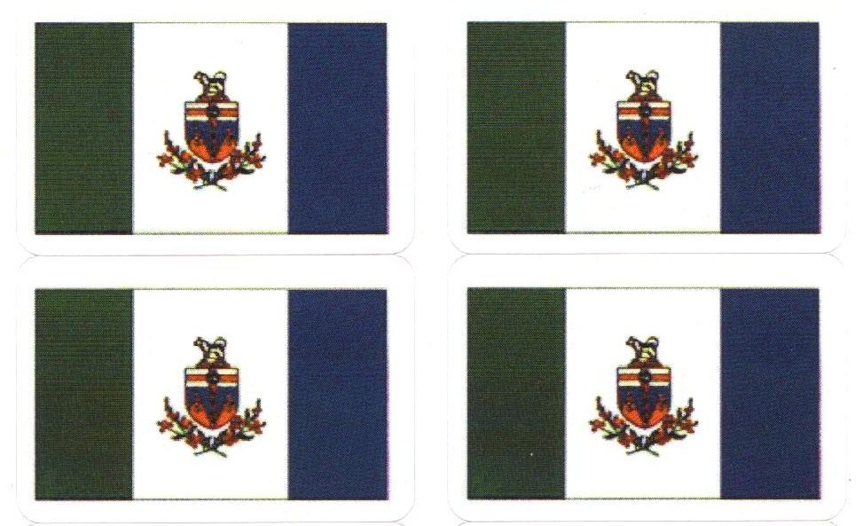 Yukon flag stickers are now available in sheets of 50 stickers per page. Each sticker measures 1" x 1 1/2" and is printed on heavy label paper stock.