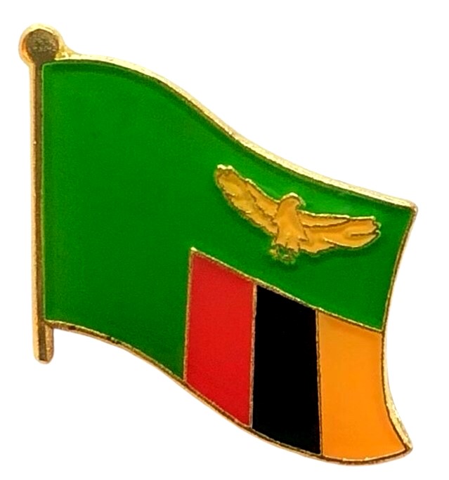 Zambia flag pin measures approximately 1 inch; x 3/4 inch; or 24 mm x 16 mm and has an all metal lacquered design with clutch pin.