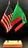 Elevate your workspace with our Zambia and American miniature flag desk set! These silk-like rayon flags, measuring 4"x6", are attached to a 10" black plastic staff and finished with a gold spear top. Perfect for office, classroom, or table decor. Each set comes with a 4" long white flag stand for added display options.